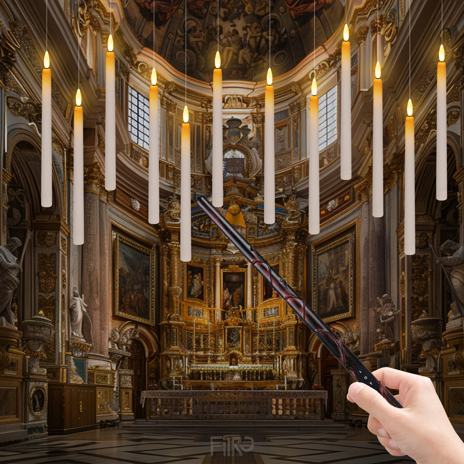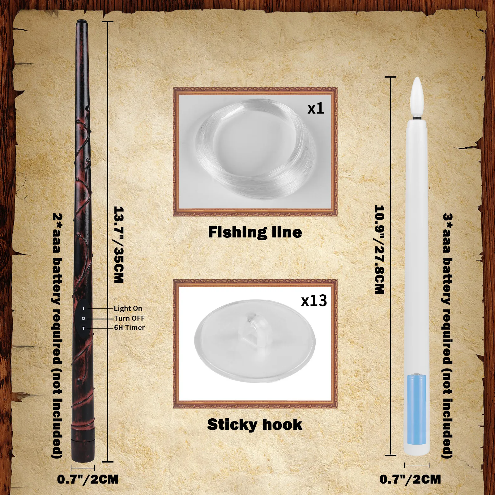 【Magical Holiday Gifts for Kids】 These flameless candles with magic wand remote is an amazing magical gift for your kids to play with magic fun, who are usually fascinated by the magical theme. The hangging candles with a magic wand remote will bring a feel of the magical world! Package Set : You will receive 12/24/36/48pcs flickering taper candles,1/2/3/4pcs magic wand,1/2/3/4 roll of fishing line and 12/24/36/48pcs hooks.