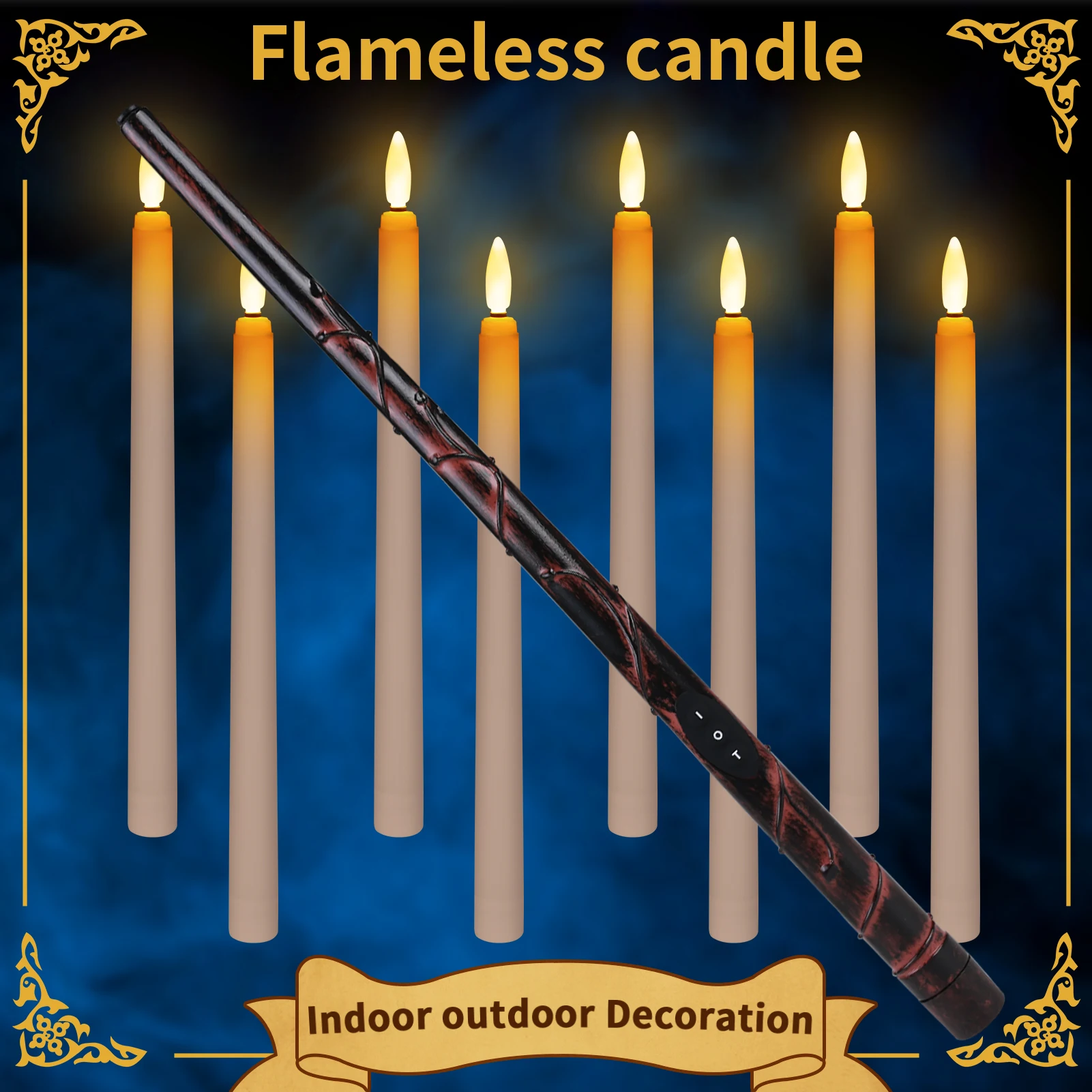 12/48Pcs Floating Candles with Magic Wand Flickering Warm Light LED Flameless Candle Taper Candles for Christmas Halloween Party