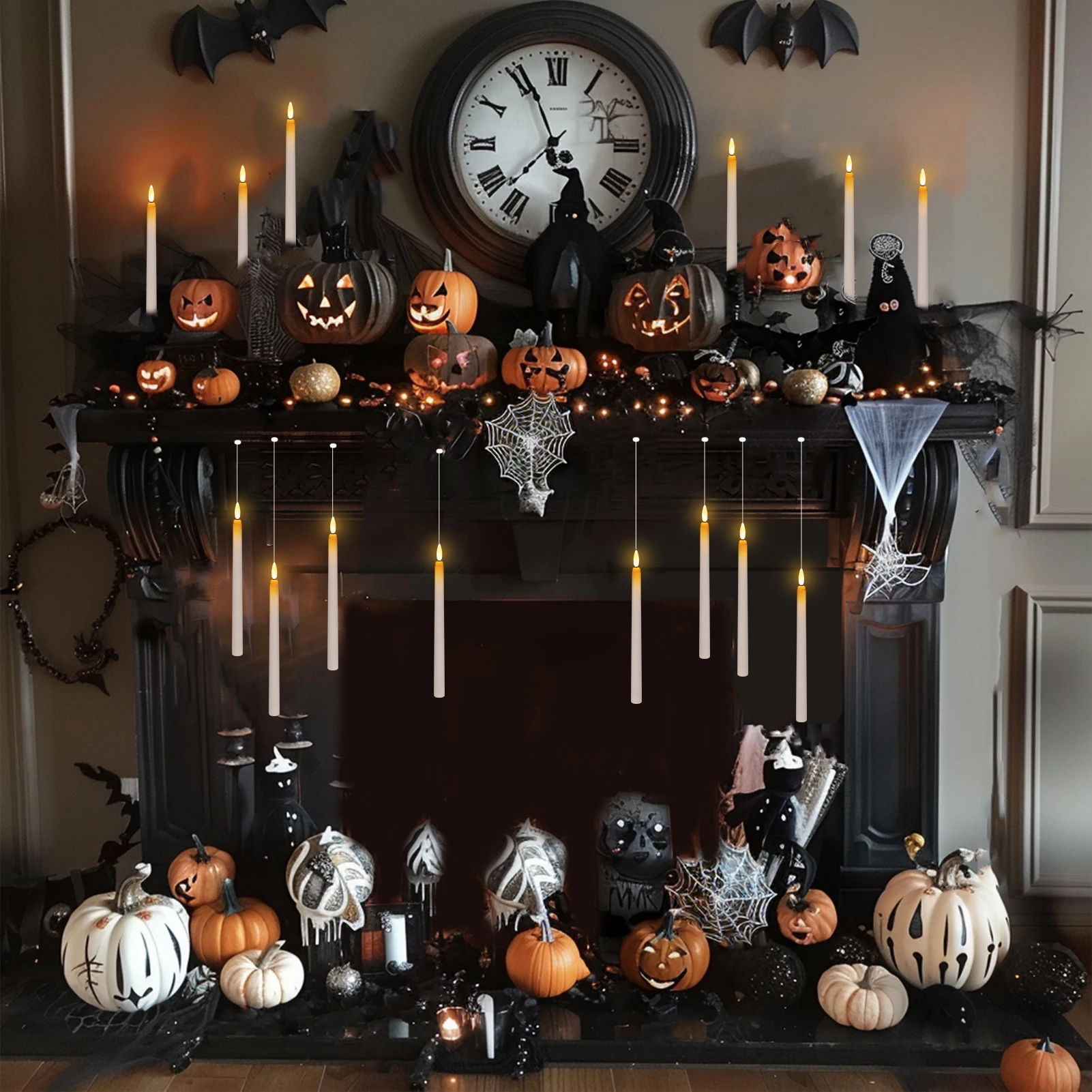Our floating candles boast an exquisite, petite appearance and look of real candle flames with our 3D wick design. There is a small hole designed on the top of the floating candle. You can cut the equipped fishing line according to your favorite length, easily pass through the hole, and hang it anywhere. These flameless floating candles effortlessly create a cozy and inviting light, perfect for home decor, Halloween decor, parties, weddings, or any special occasion.