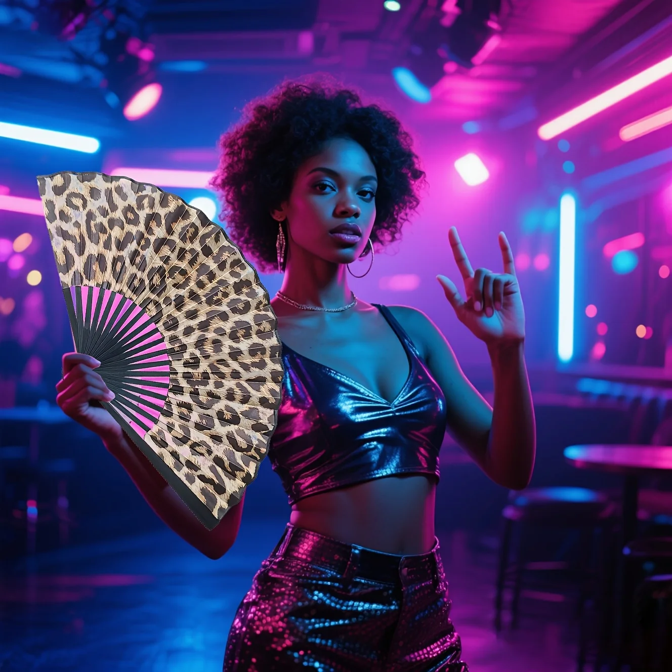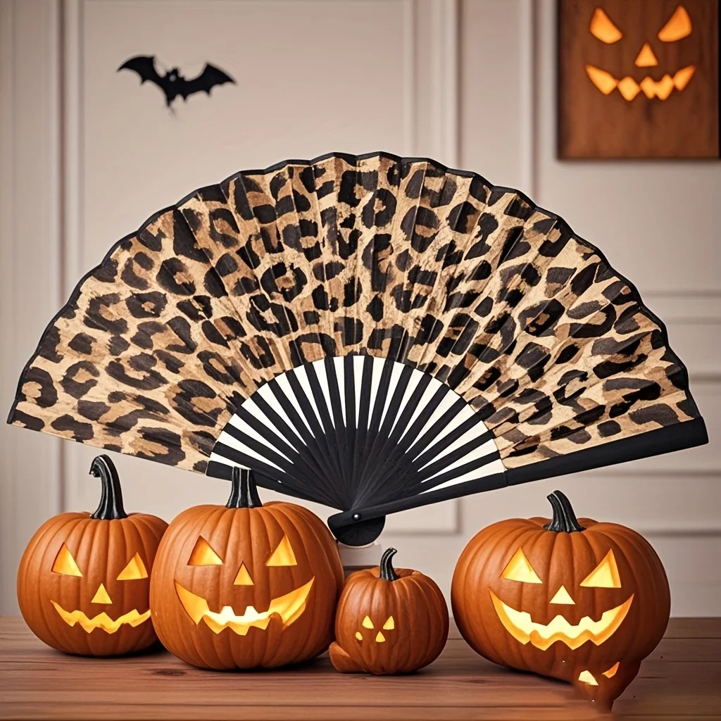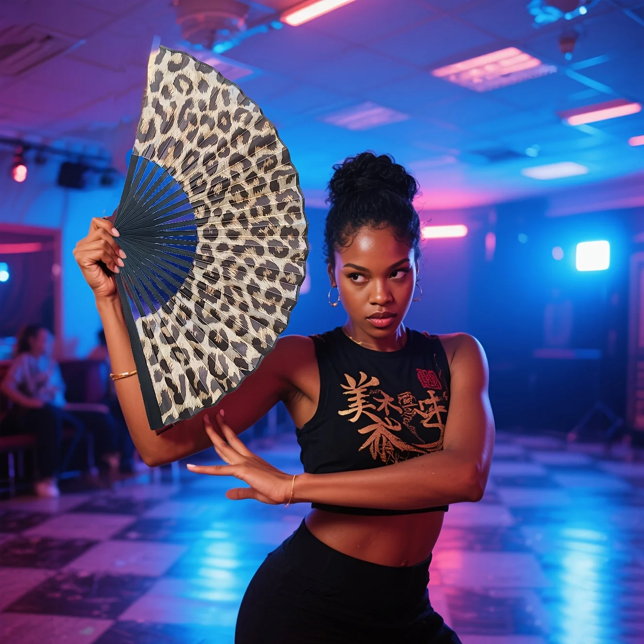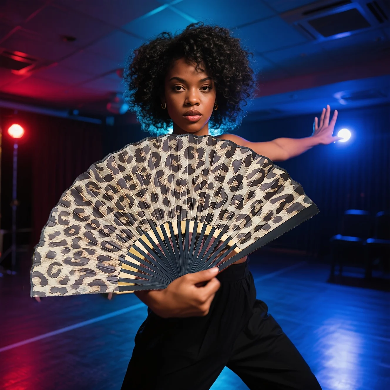 Elegant Leopard Print and Black Frame Folding Fan - Used for Performances, Parties, Weddings, and Home Decor